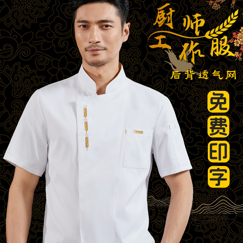 Baju kerja koki Ice Silk lengan pendek, pakaian kerja koki hotel kantin restoran pot panas Restoran Dapur musim panas