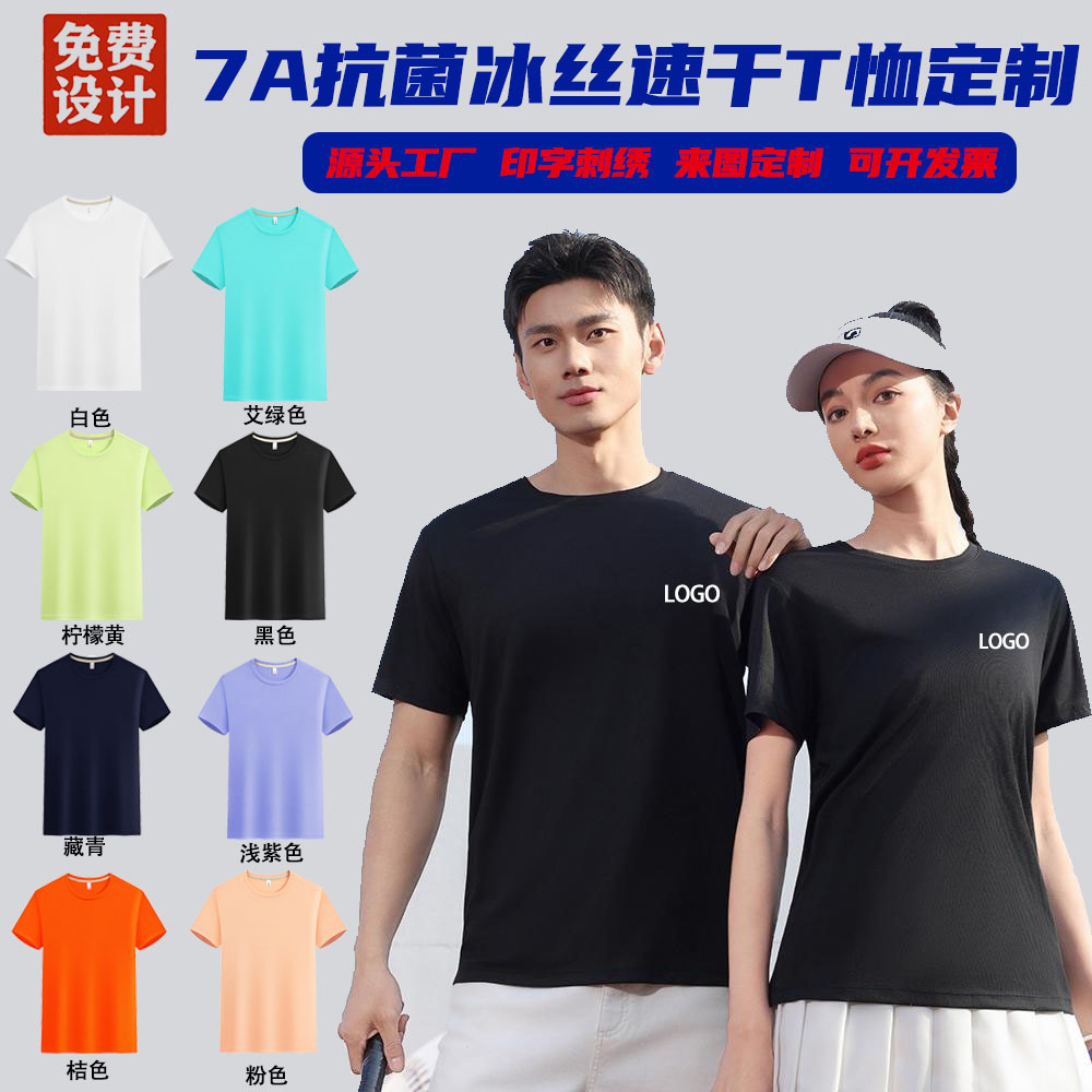 Kaus Sutra Es Pakaian Kerja Lengan Pendek Kerah Bulat Logo Kustom Pakaian Olahraga Cepat Kering Tembus Udara Kustom Kemeja Iklan Budaya