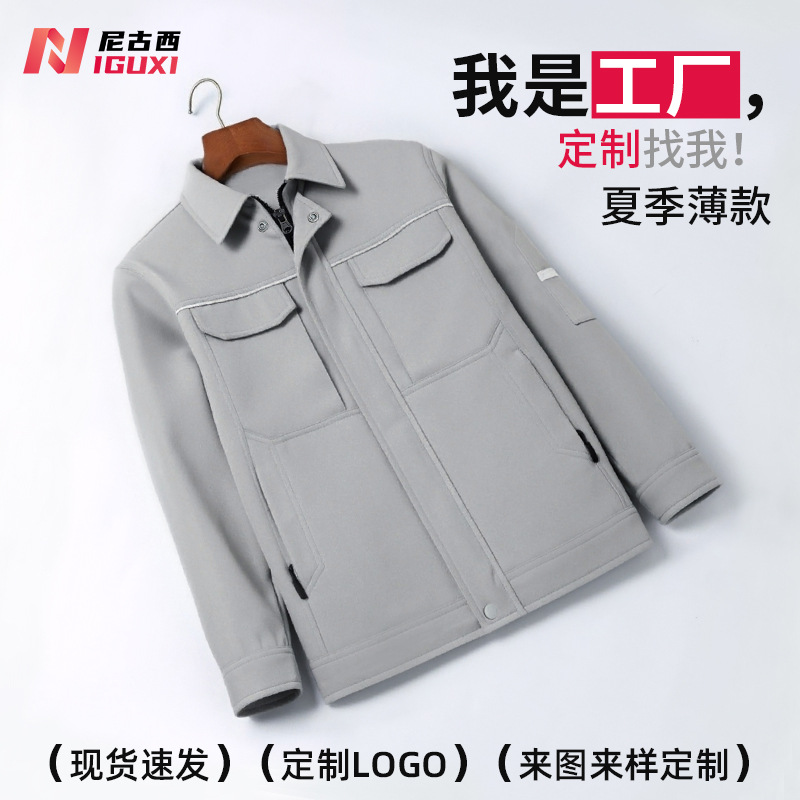 Pakaian Kerja Lengan Panjang Tipis Musim Panas Grosir Tahan Aus dan Tahan Kotor Bengkel Pabrik