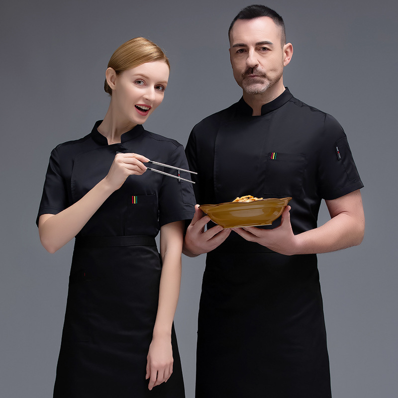Pakaian kerja koki kustom pria dan wanita, pakaian dapur lengan pendek musim panas ringan, Toko Kue Restoran Barat, pakaian koki memanggang Barat