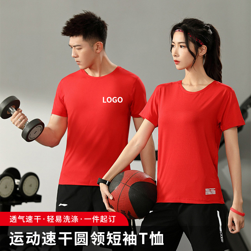 Kaus lengan pendek, pakaian lari maraton, kaus jala leher bulat, kaus lengan pendek, pakaian cepat kering, baju iklan logo bermotif