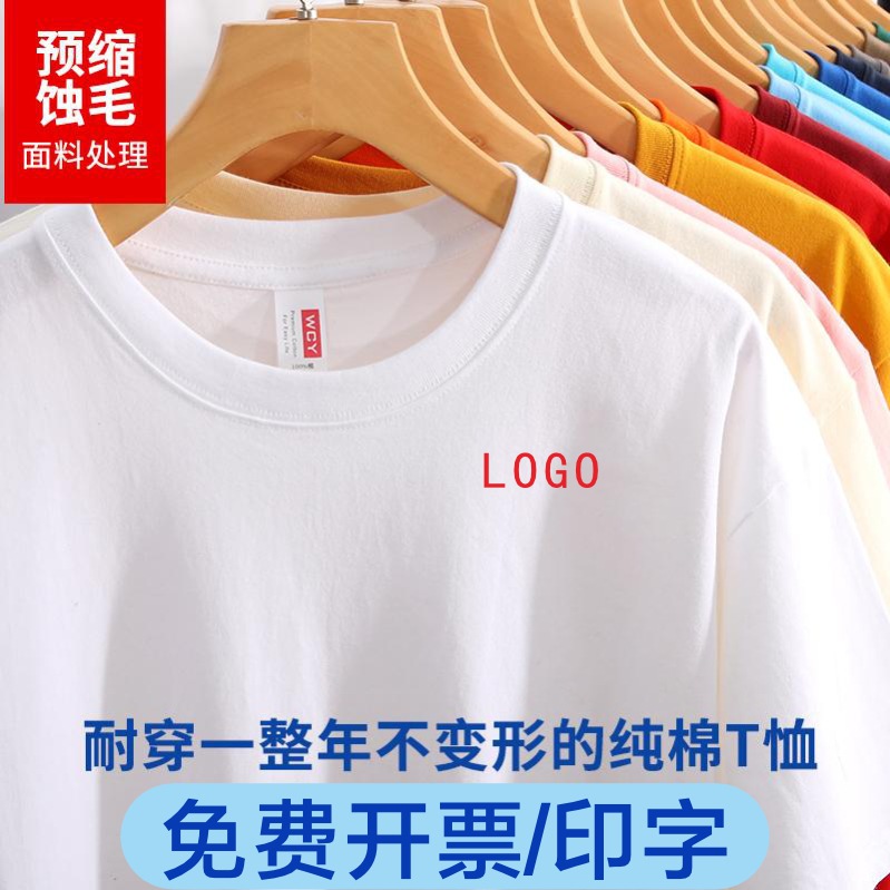 Kaus lengan pendek leher bulat katun longgar berat 250g LOGO cetak kustom baju kerja seragam kelas kemeja iklan budaya