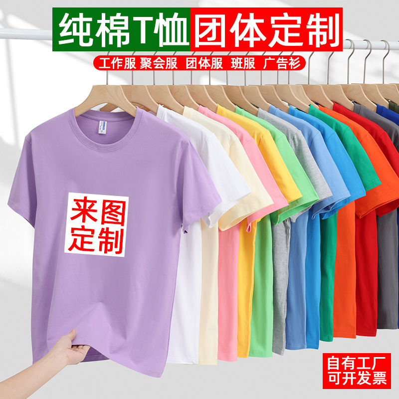 T-shirt katun baju kerja disesuaikan baju lengan pendek pakaian kelas DIY iklan kemeja budaya cetak logo leher bulat disesuaikan