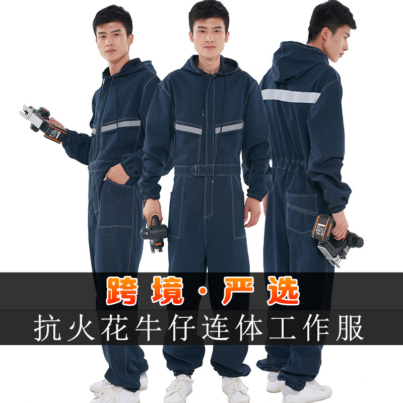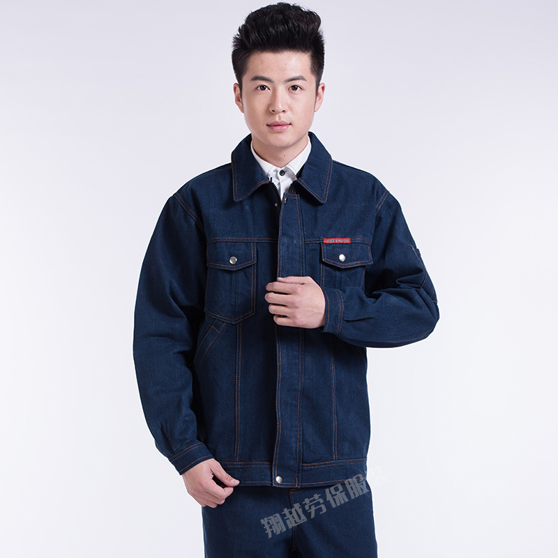Produsen pakaian pelindung tenaga kerja produksi pakaian kerja las antimelepuh baju kerja musim gugur dan musim dingin pakaian pelindung kerja Denim grosir setelan baju kerja