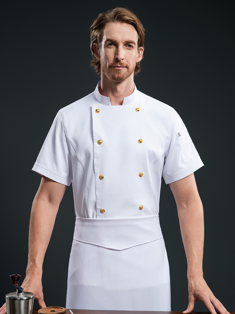 Pakaian Kerja Koki Restoran Barat Pakaian Koki Bernapas Musim Panas Dapur Hotel Restoran Hot Pot Restoran Lengan Pendek Pria