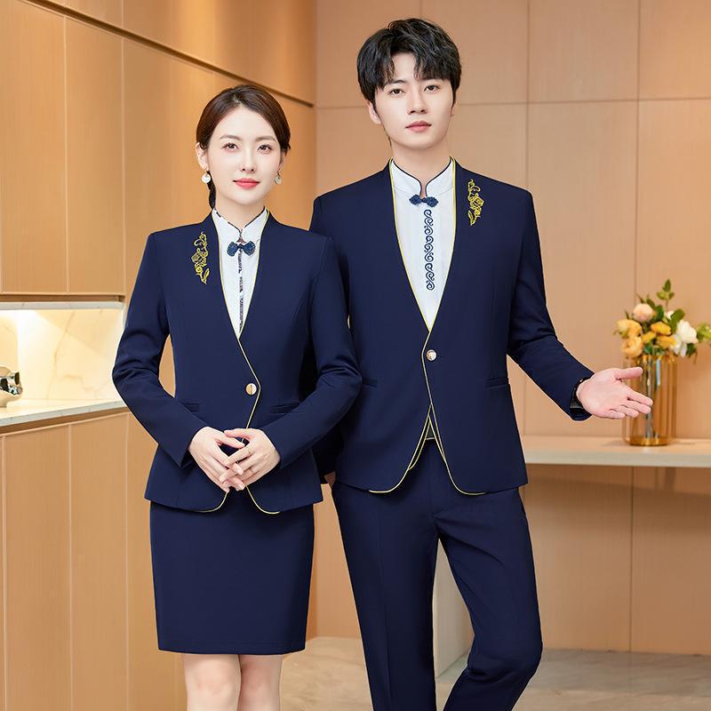 Rompi Musim Gugur dan Musim Dingin Pakaian Kerja Pelayan Restoran Meja Depan Hotel Setelan Rompi Gaya Tiongkok Setelan Pakaian Profesional Kelas Atas Pria Wanita