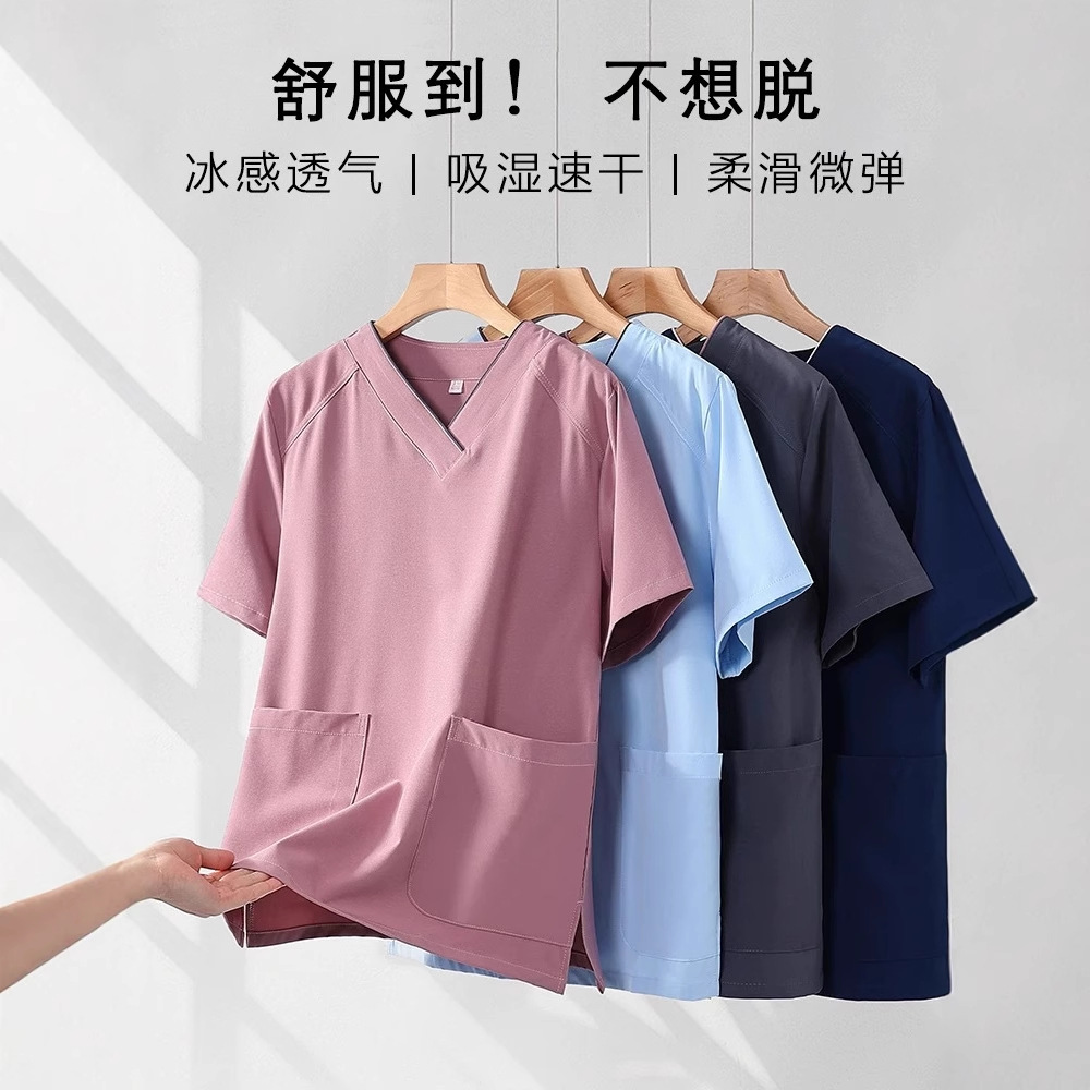 Setelan pakaian perawat pria dan wanita, pakaian sikat tangan mulut rumah sakit, seragam kerja elastis cepat kering