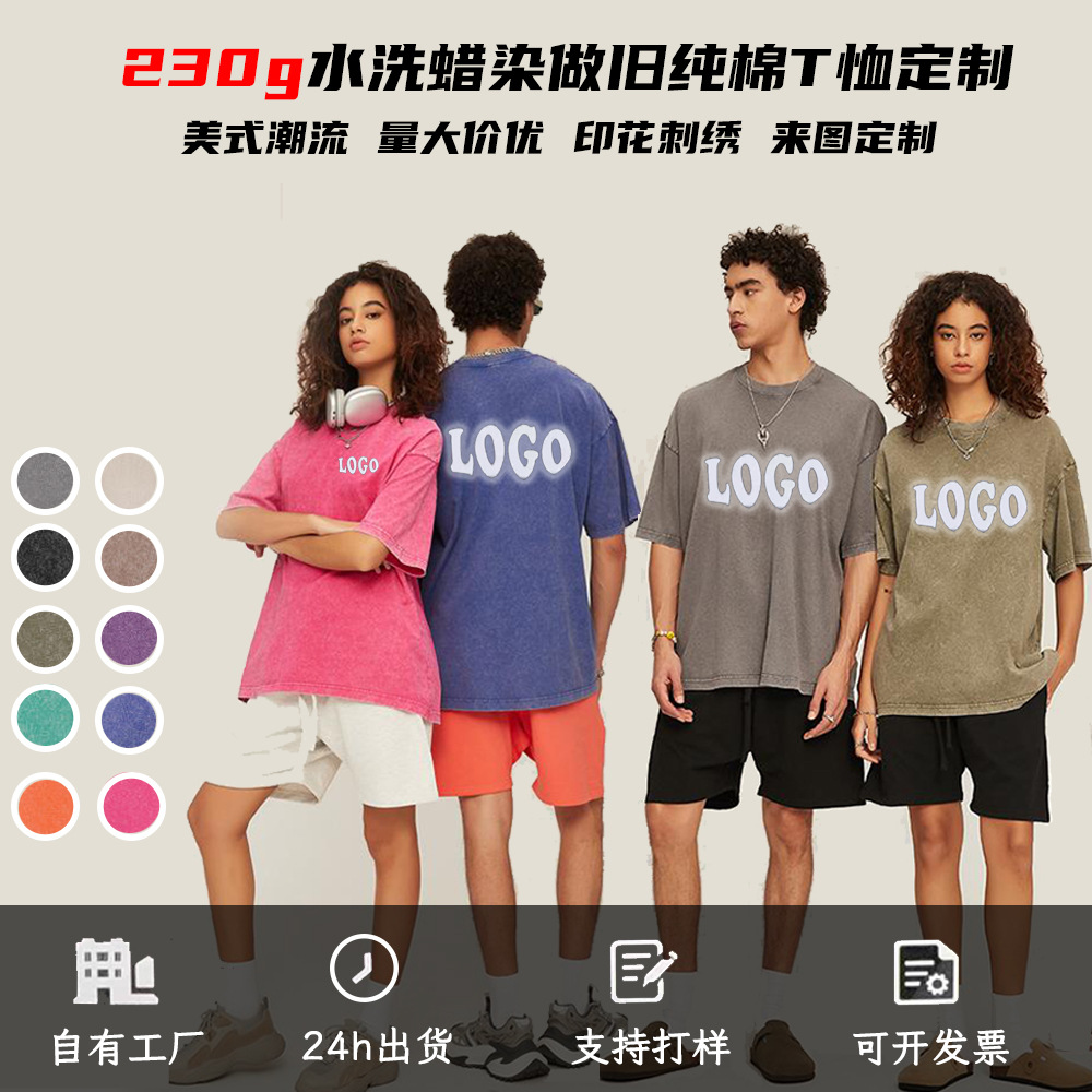 230g Kaos Oblong Katun Murni yang Dicuci dan Dicuci