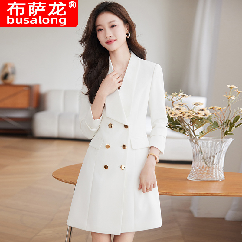 Gaun kerah setelan gaya baru 2025 untuk wanita, lengan panjang, mengecilkan pinggang, gaun profesional elegan, pakaian kerja pelangsing 8815.
