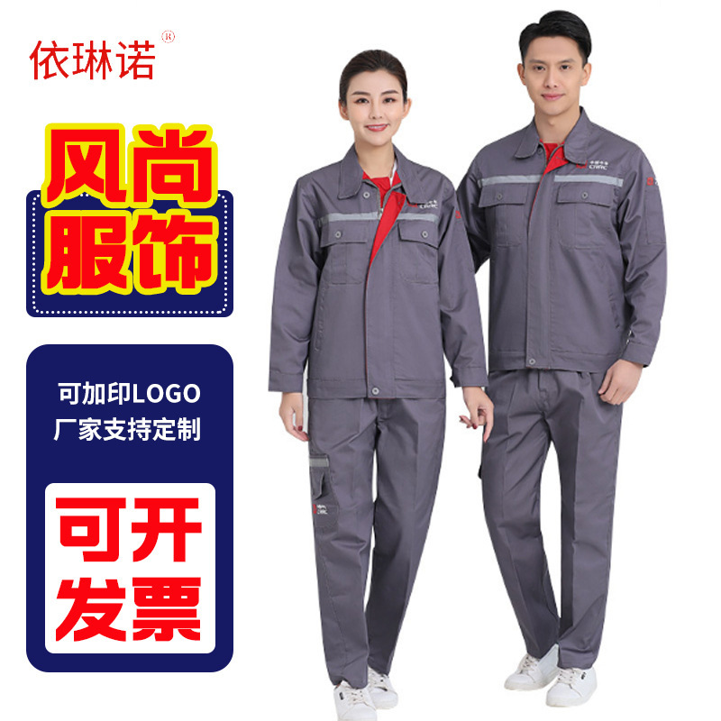 Pakaian kerja pria dan wanita lengan panjang setelan katun poliester pakaian pelindung tenaga listrik pelindung kerja bengkel Musim Semi dan Musim Gugur pabrik pakaian kerja cetakan
