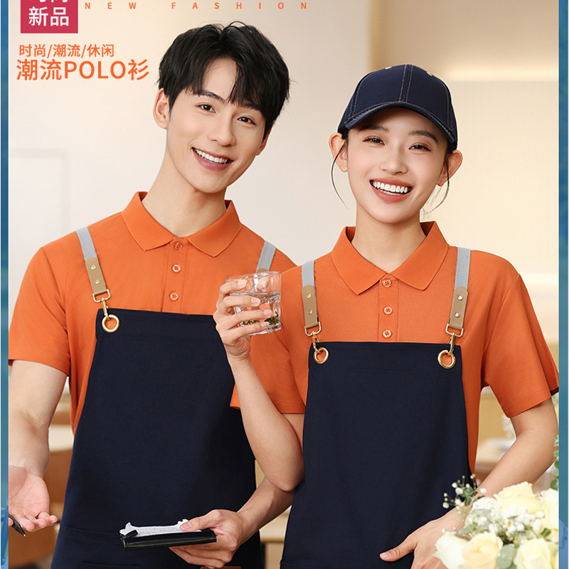 Kemeja Polo Warna Oranye Pakaian Kerja Kustom Cetak Logo Pakaian Kerja Staf Toko Teh Susu Restoran Restoran Restoran Hot Pot