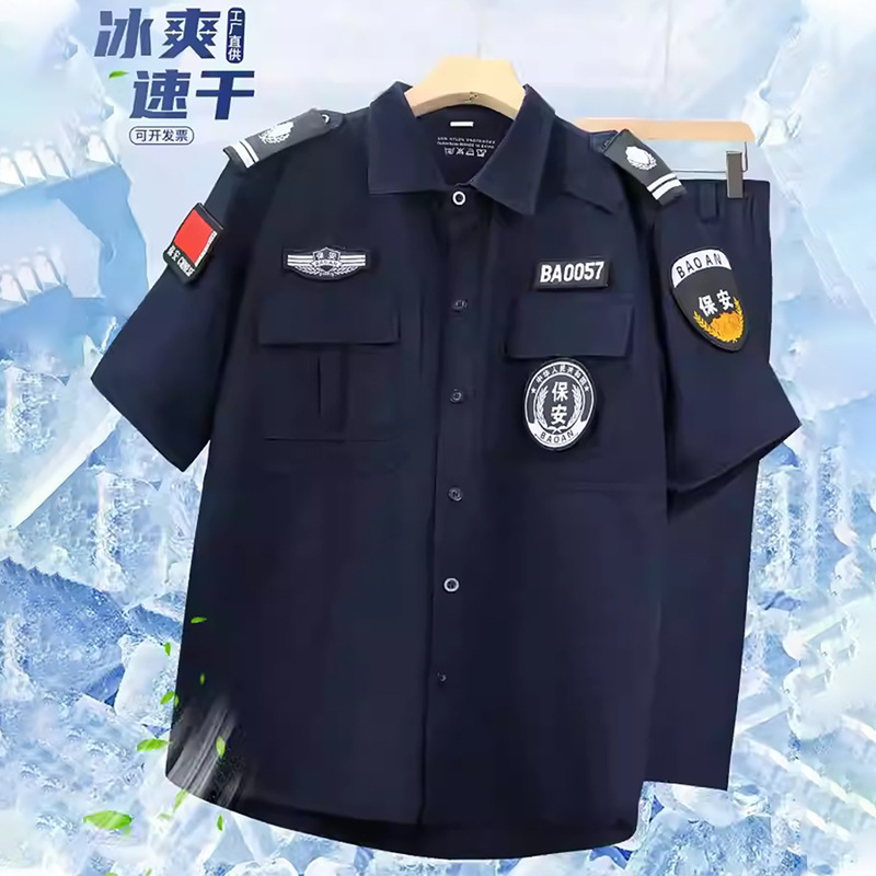 Seragam Pelatihan Cepat Kering Elastis Pakaian Kerja Penjaga Keamanan Pria Wanita Lengan Pendek Musim Panas Tipis Biru Bertugas Seragam Keamanan