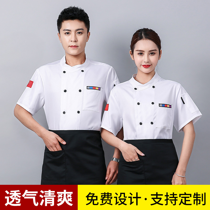 Pakaian Kerja Koki High-end Pakaian Koki Butik Logo Bordir Pria dan Wanita Lengan Pendek Dapur Setelah Musim Panas di Kantin Hotel