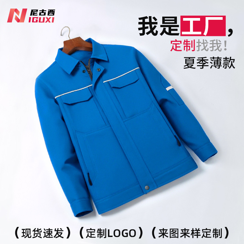 Pakaian Kerja Katun Murni Musim Panas Setelan Pakaian Kerja Pakaian Kerja Pabrik Pengelasan Lengan Panjang Model Tipis Pakaian Kerja Kustom Musim Panas