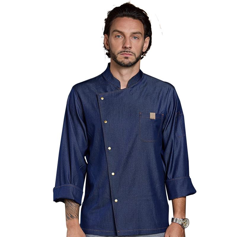 Pakaian Kerja Koki Baju Atasan Denim Elastis Kantin Restoran Barat Kantin Panci Makan Hot Panggang Lengan Panjang Koki Kustom LOGO