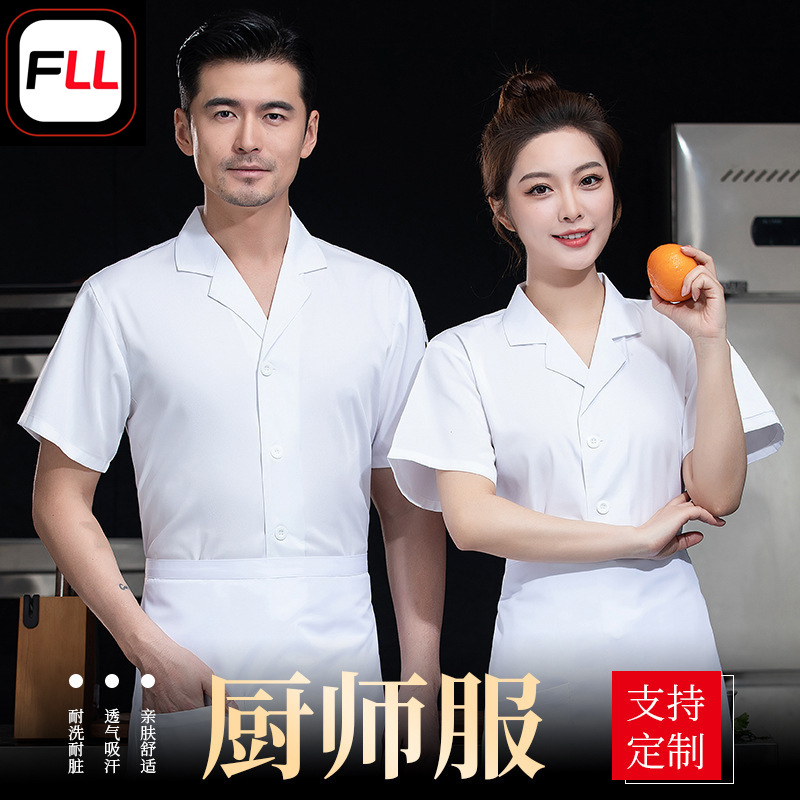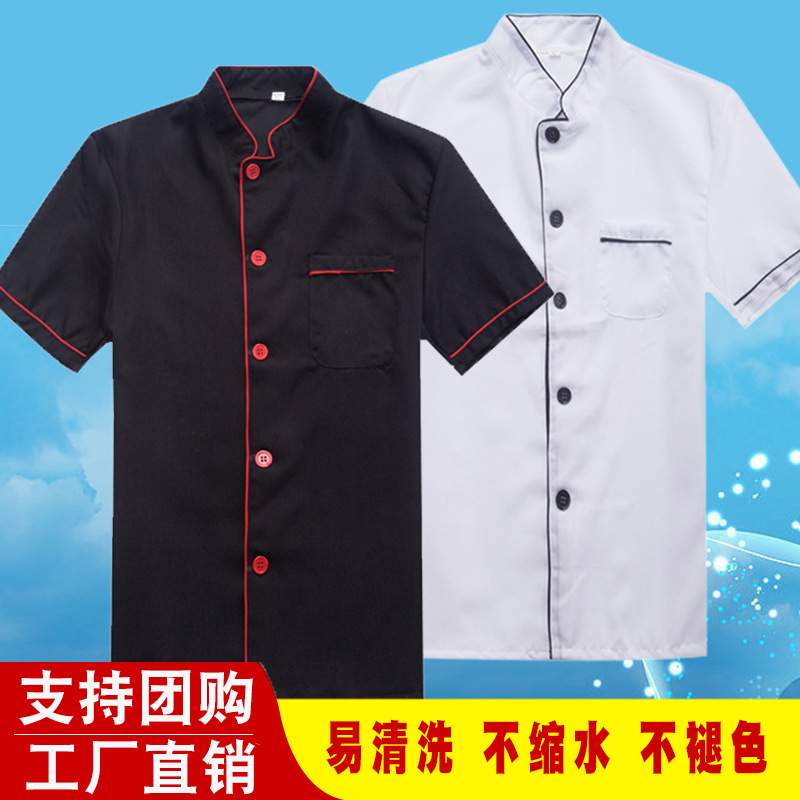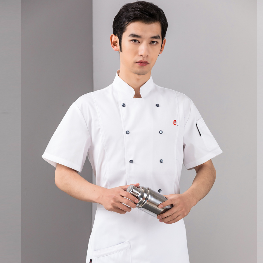 Pakaian kerja koki pria, baju koki gaya China trendi, lengan pendek, musim panas, tipis, bersirkulasi, kustomisasi pakaian koki dapur belakang