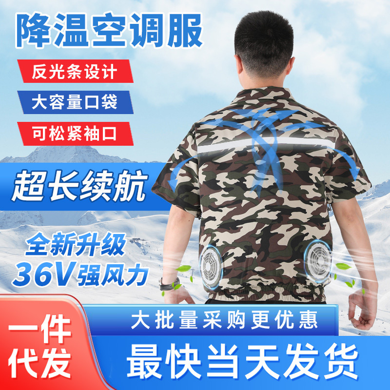[Harga Spesial Seluruh Jaringan] Pakaian AC Lengan Pendek Pakaian Kipas Lokasi Kebun Musim Panas Pakaian Kerja Perlindungan Tenaga Kerja Model yang Sama untuk Pria dan Wanita