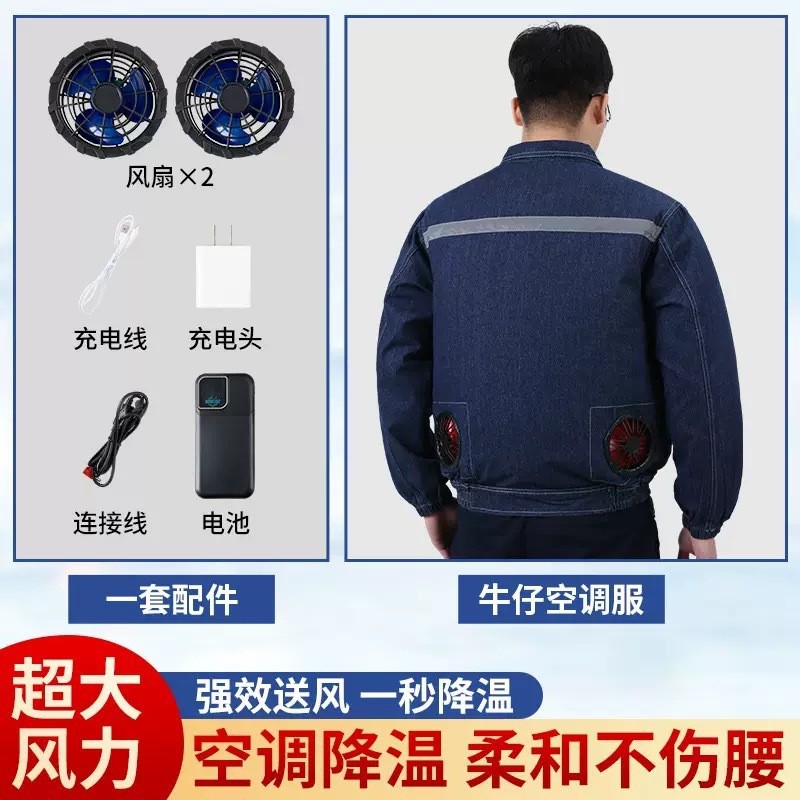 Pakaian Musim Panas AC Pakaian Denim Kipas Pendingin Pakaian Pendinginan Pakaian Kerja Tempat Pengisian Daya Pendinginan Pakaian Kerja Pakaian Kerja Bernapas