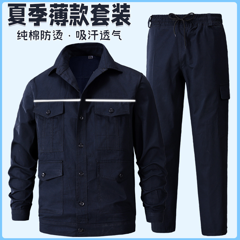 Pakaian Kerja Katun Poliester Tipis Musim Panas Set Panjang Lengan Pendek Pria dan Wanita Bengkel Perbaikan Mobil Pakaian Kerja Pabrik Pakaian Perlindungan Tenaga Kerja Bisa Grosir