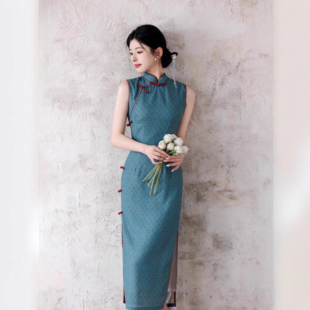 Gaun jamuan pernikahan elegan anak muda cheongsam Peningkatan Tiongkok baru musim panas 2023 gaun panjang menengah