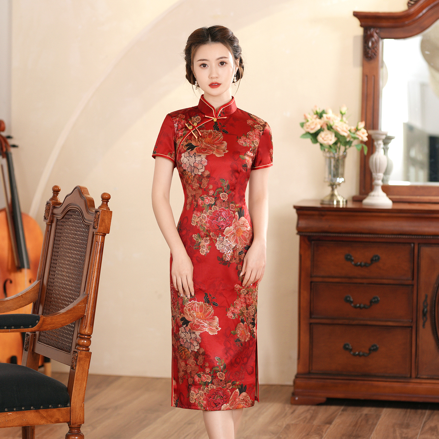 Cheongsam pernikahan wanita, baju versi modifikasi harian, pakaian ibu perjamuan pernikahan lengan pendek retro musim panas 2023