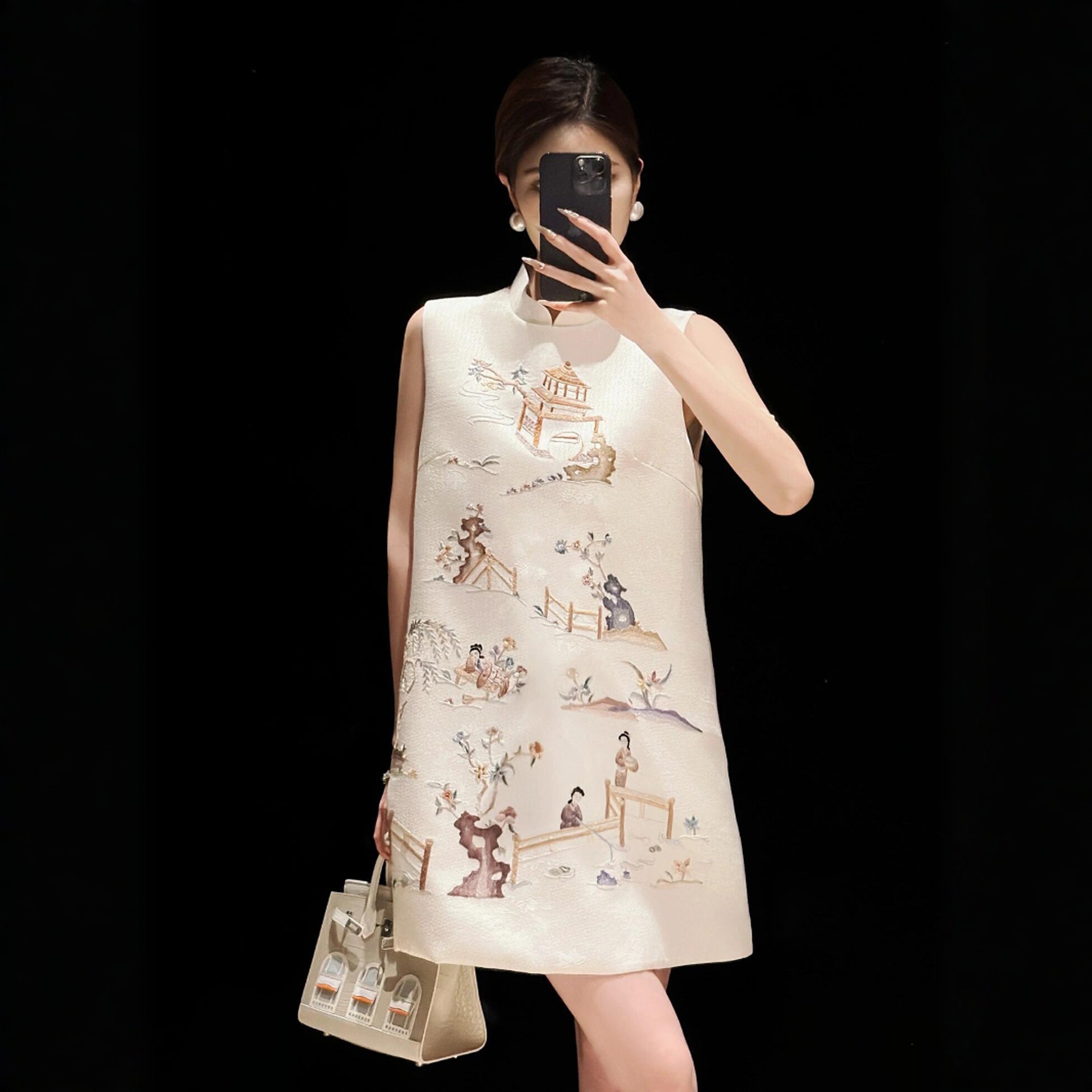 Gaun Bordir Industri Berat Retro Gaya Tiongkok Baru Rok Cheongsam Longgar Tanpa Lengan Model Senior Model Baru Musim Semi Wanita