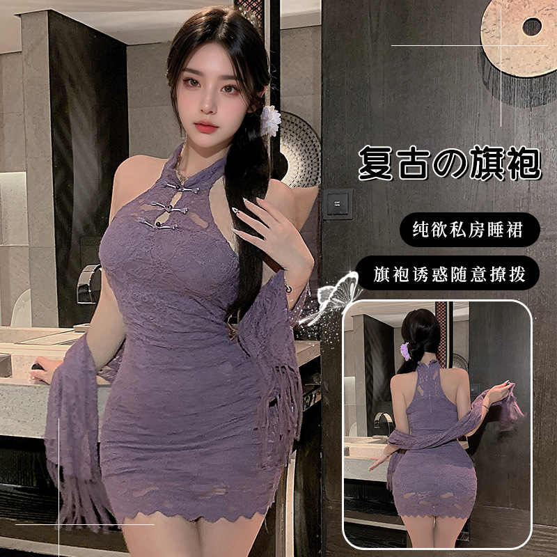 Seragam pakaian dalam seksi cheongsam menggoda pelayan Malam seksi pesona gairah setelan menggoda tempat tidur piyama keinginan murni