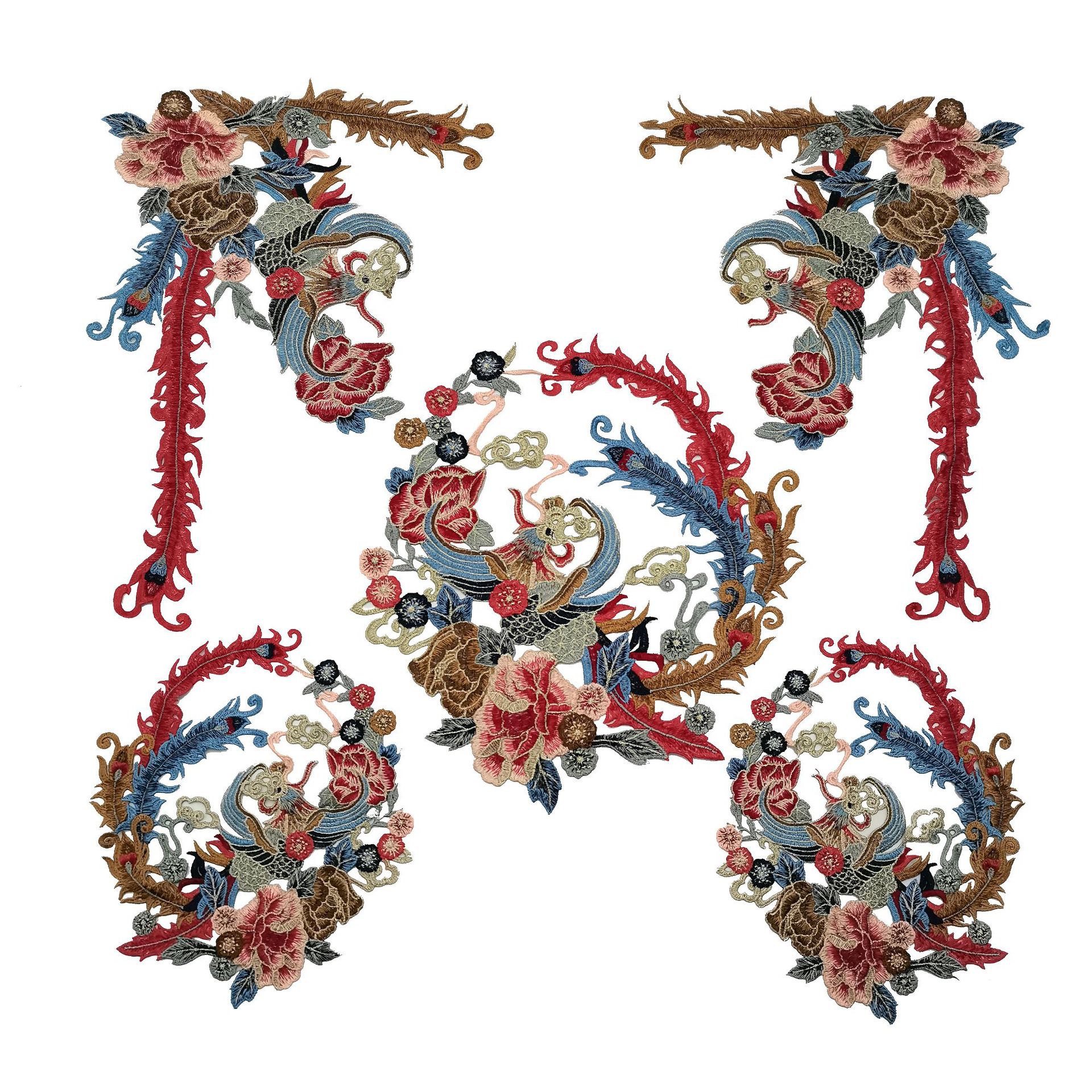 Bordir larut air stiker kain burung phoenix warna-warni pakaian anak-anak cheongsam aksesori pakaian performa mantel applique Aksesori DIY grosir