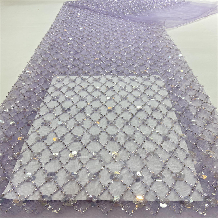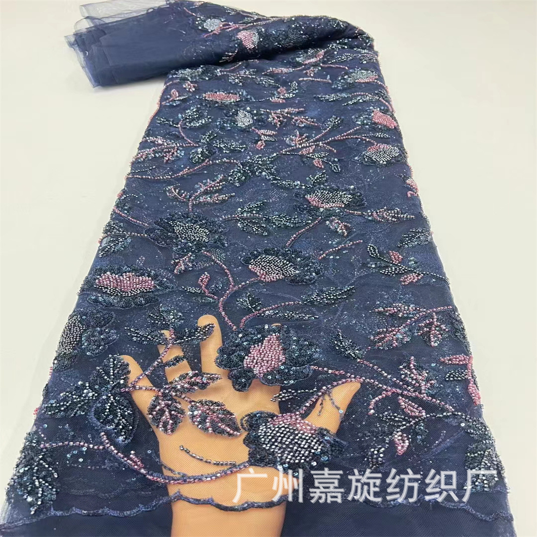 重工珠管串珠亮片绣刺绣旗袍面料婚纱礼服网纱蕾丝绣花布料JX4321