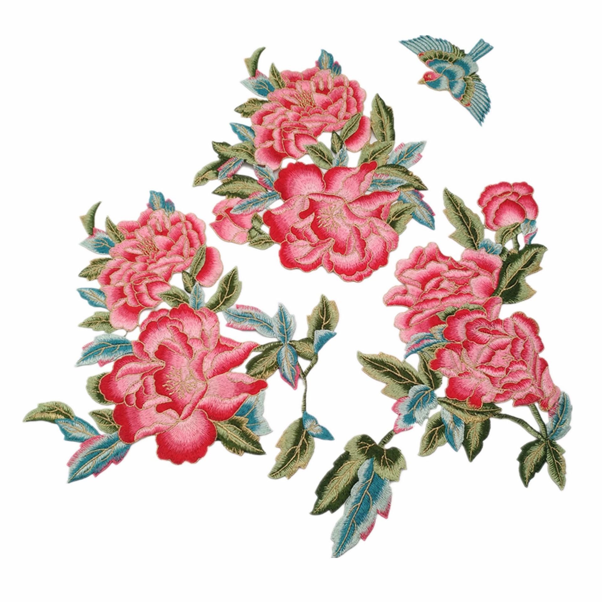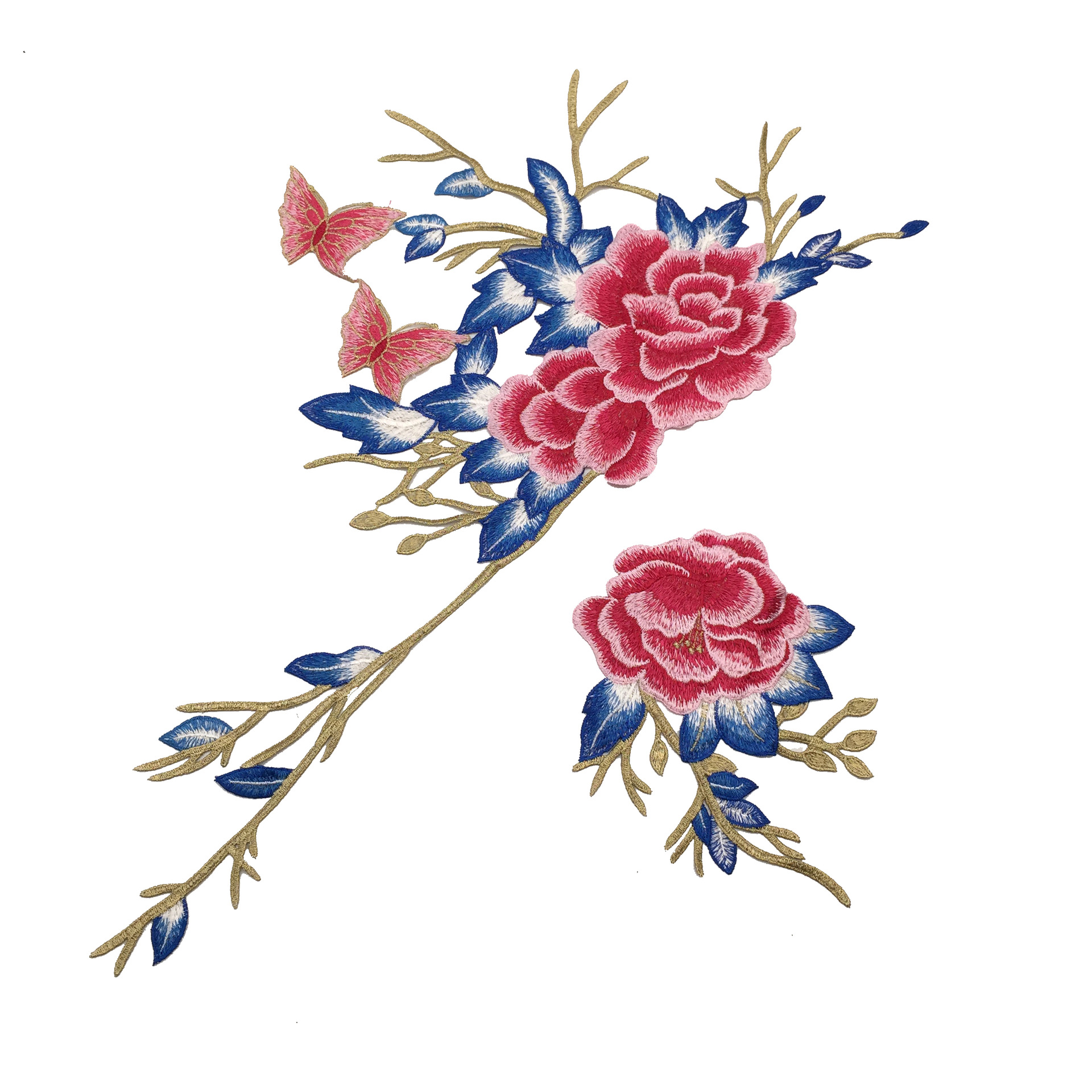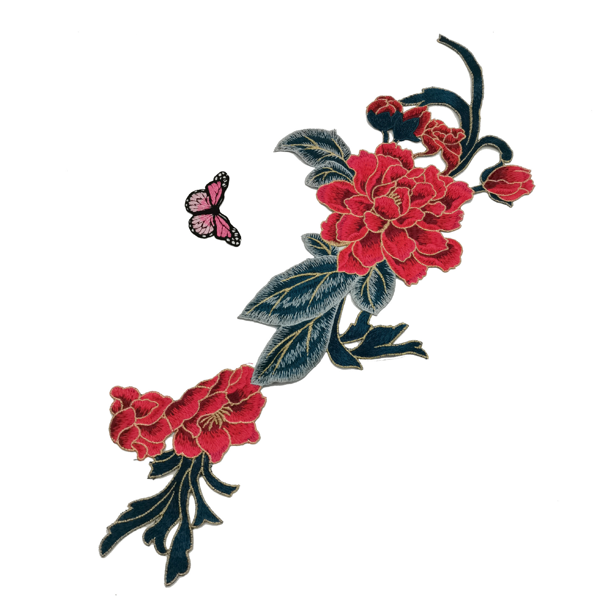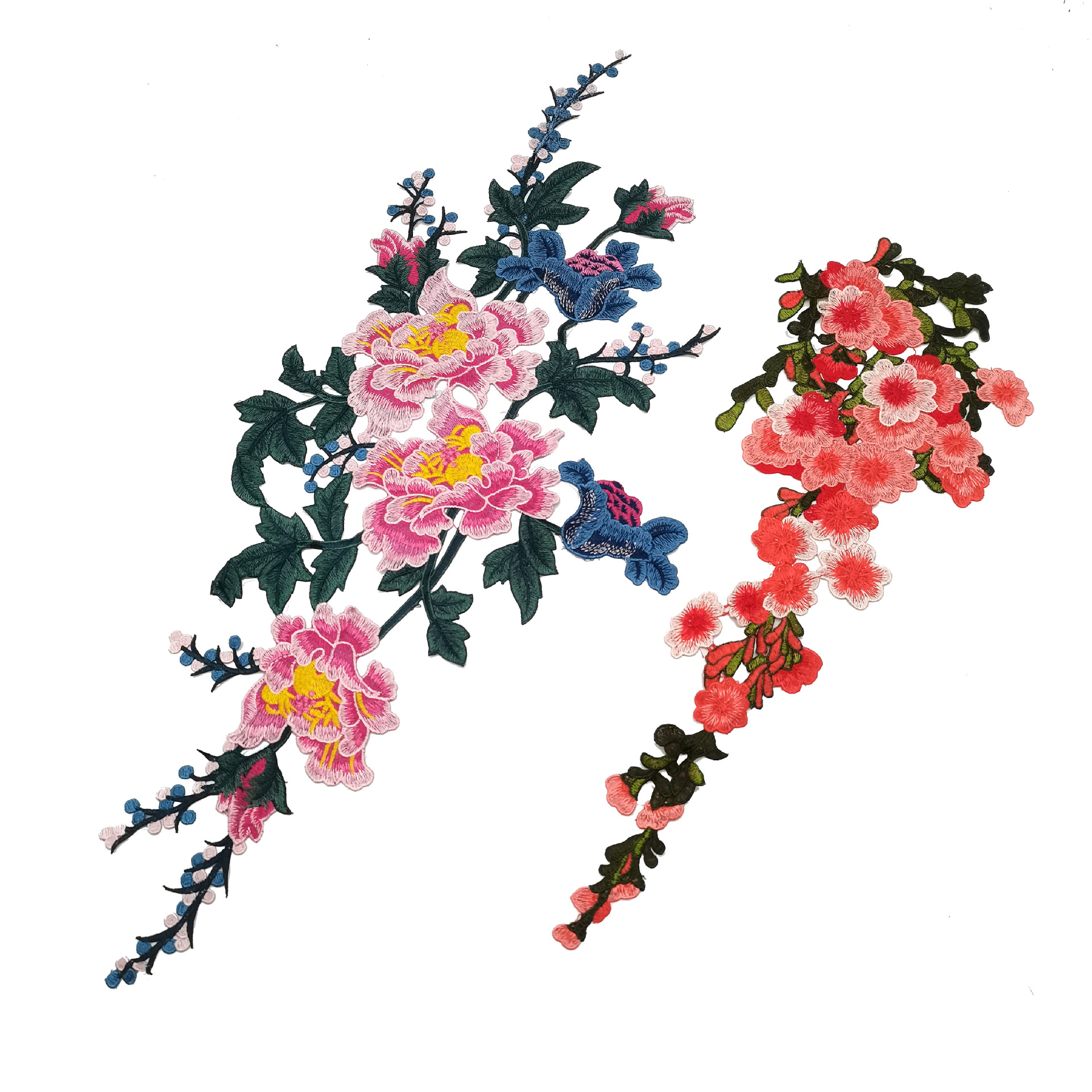 Stiker kain bordir bunga peoni panjang pakaian dalam bordir larut air warna aksesori pakaian kerah cheongsam bunga grosir
