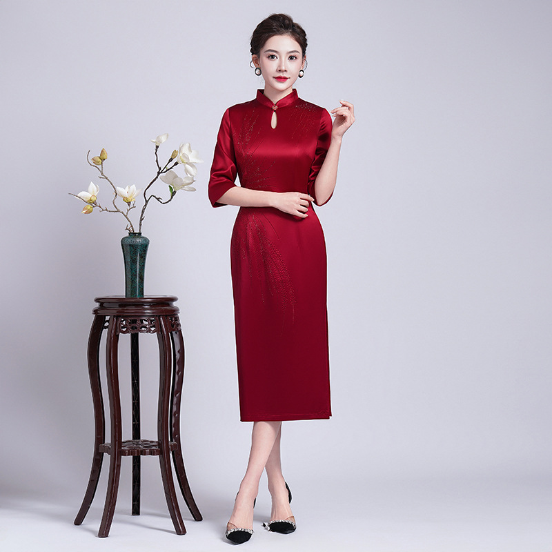 Gaun panjang kinerja panjang cheongsam catwalk kelas atas temperamen muda ibu wanita usia sedang musim semi dan musim panas gaun harian dapat dipakai