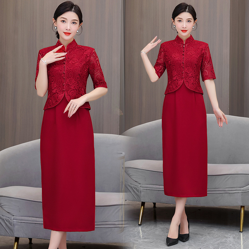 Pakaian Pesta Pernikahan Ibu mertua muda Cheongsam Gaun Pernikahan Ibu Pernikahan Gaya Nasional Renda Gaya Barat Setengah Baya
