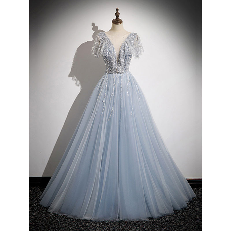Gaun malam wanita high-end, gaun malam elegan kelas atas, gaun panjang lengan pendek halter berpayet untuk wanita