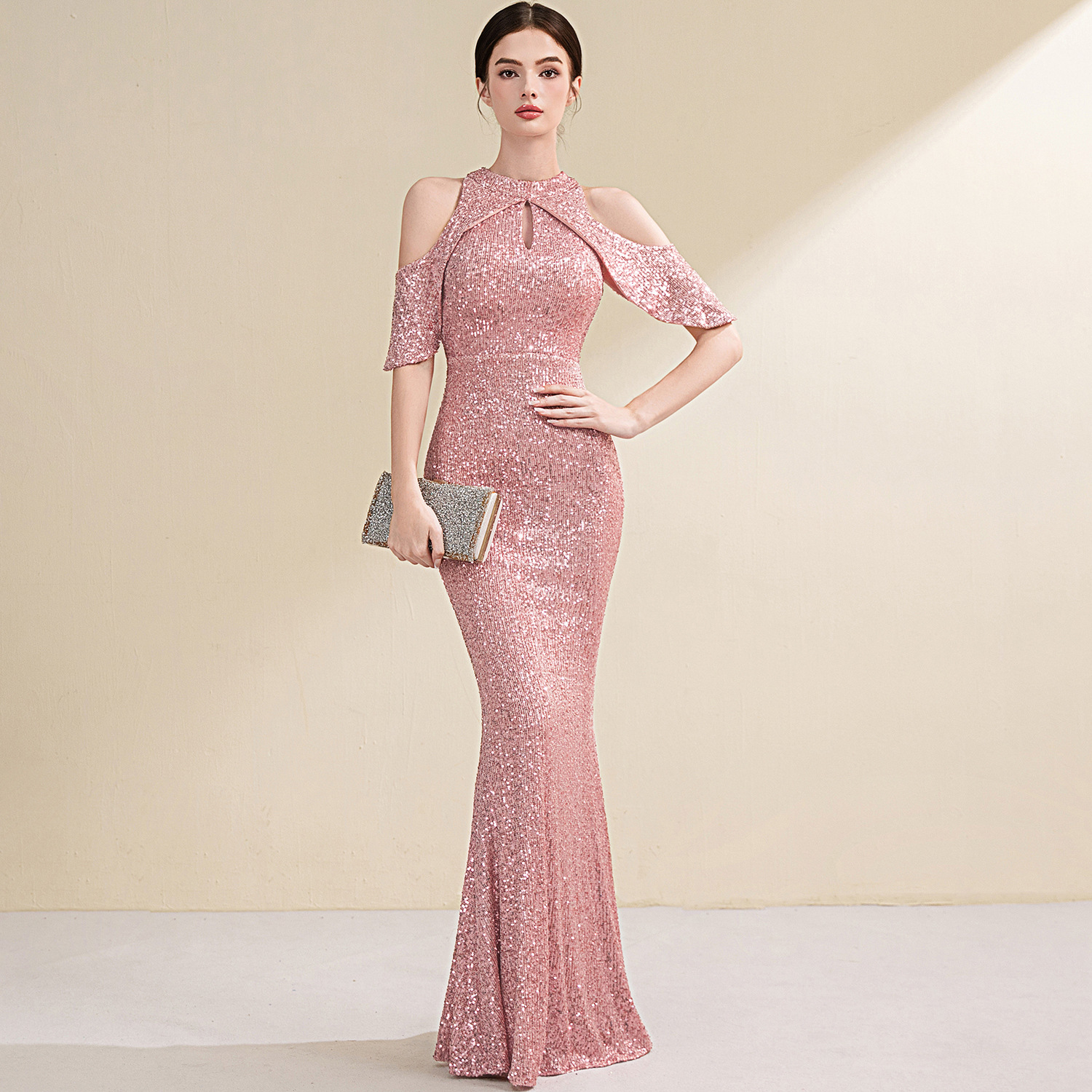 1371 # gaun bahu terbuka gaun malam berpayet ekor ikan panjang gaun malam perjamuan pelangsing ramping gaun tuan rumah