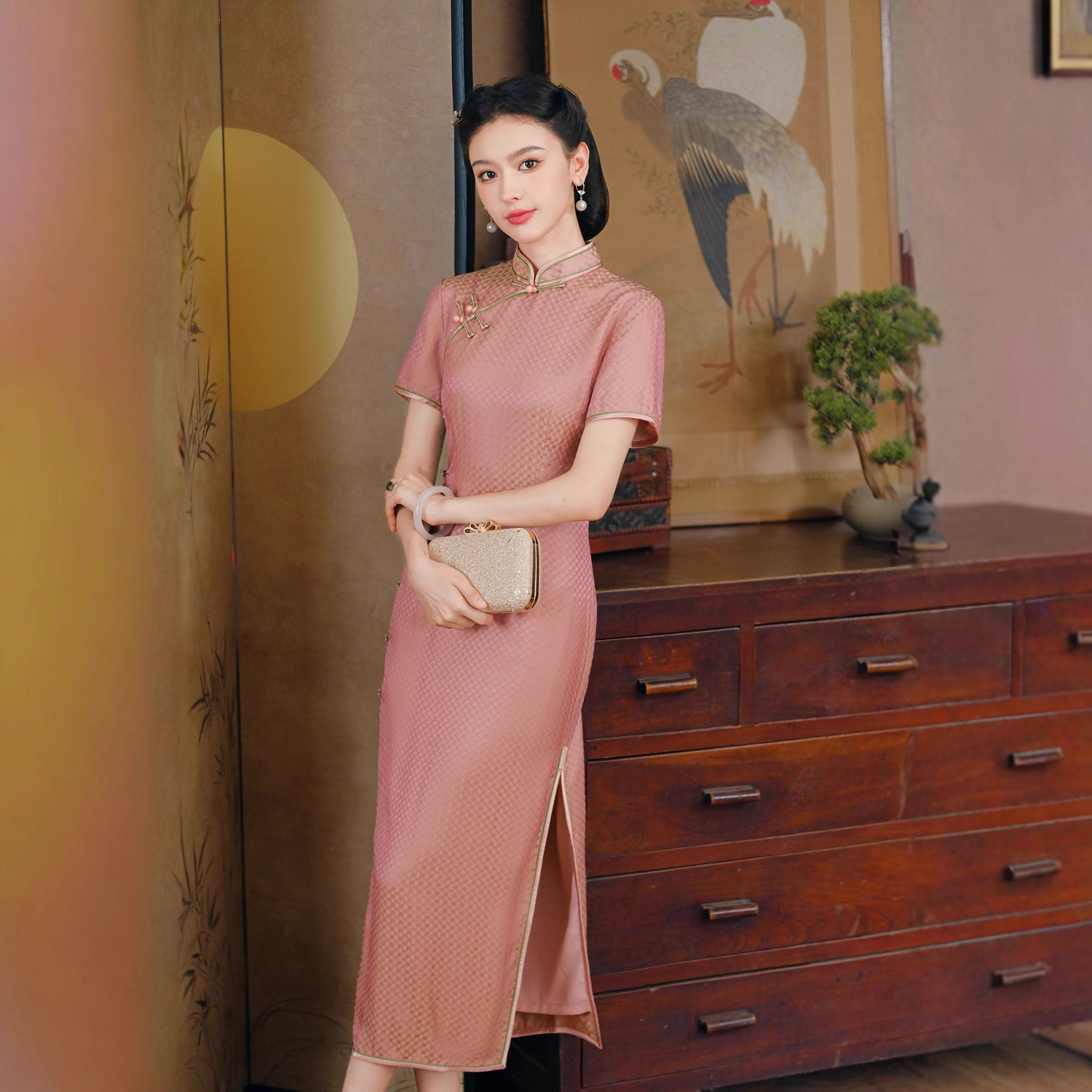 Gaun qipao Cina modern bergaya sosialita vintage tahun 2026, gaun bergaya nasional dengan keanggunan Korea.