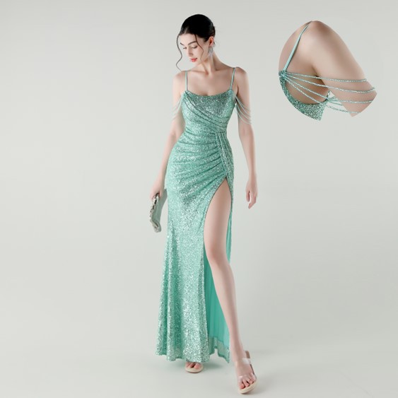 19607 # gaun pesta malam baru jamuan panjang gaun malam ramping elegan panjang berpayet Pertemuan Tahunan tuan rumah