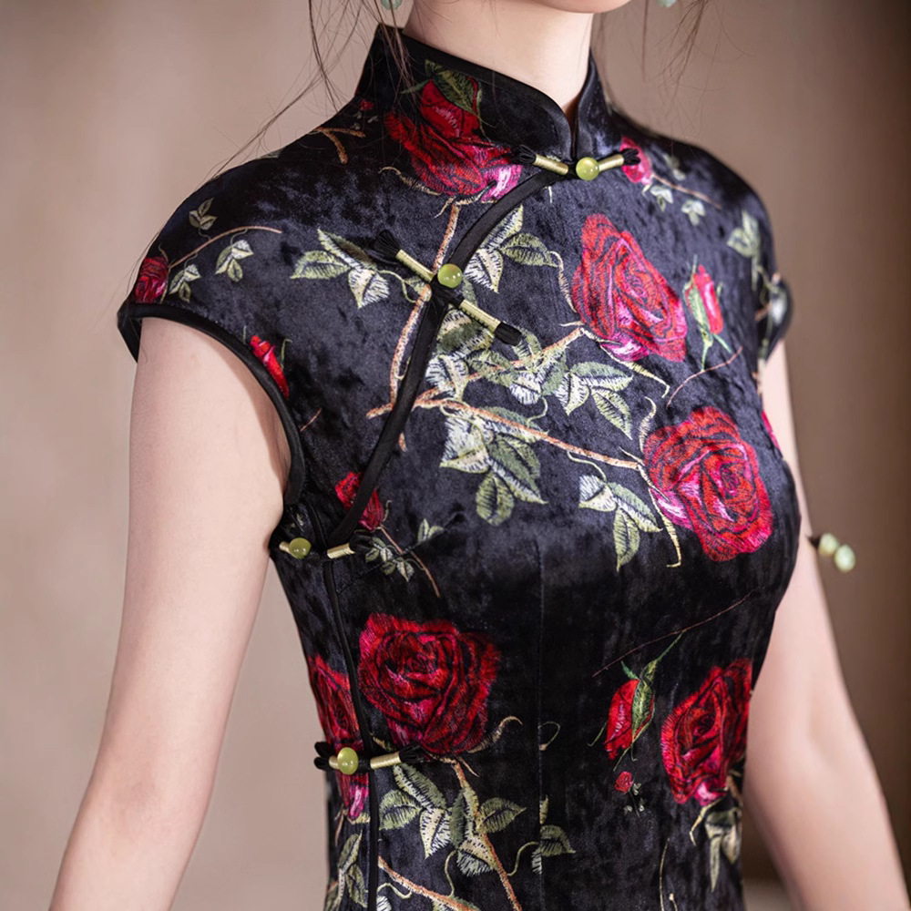 Cheongsam Beludru Tanpa Lengan Gaya Tiongkok Baru
