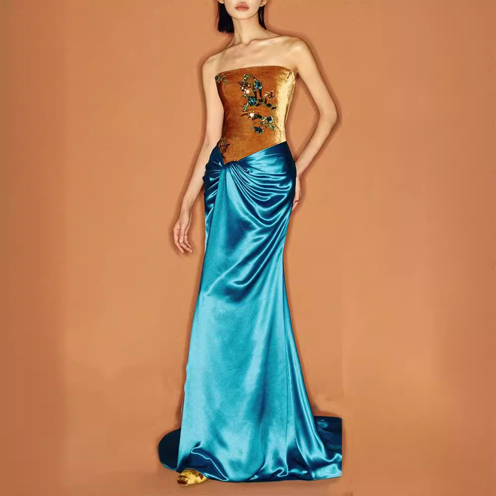 2023 musim dingin baru ditingkatkan cheongsam fishtail panjang Amazon atmosfer etiket tim khusus catwalk acara kostum merah