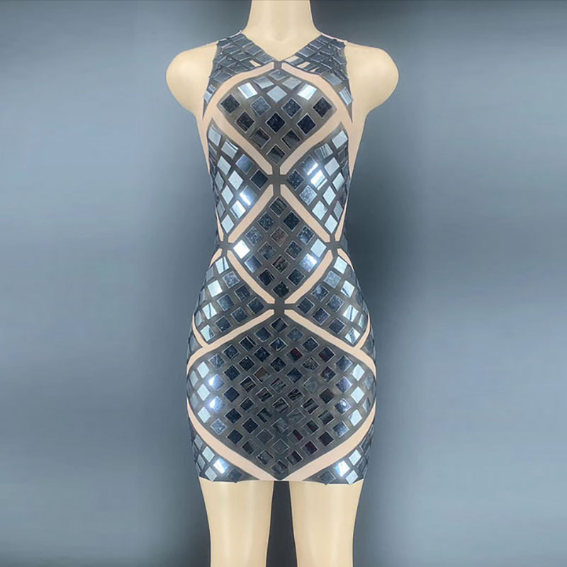Pakaian panggung seksi tembus pandang, pakaian panggung berpayet berlian imitasi buatan tangan tembus pandang seksi retro hitam, model mobil Rok terbuka cheongsam ditingkatkan