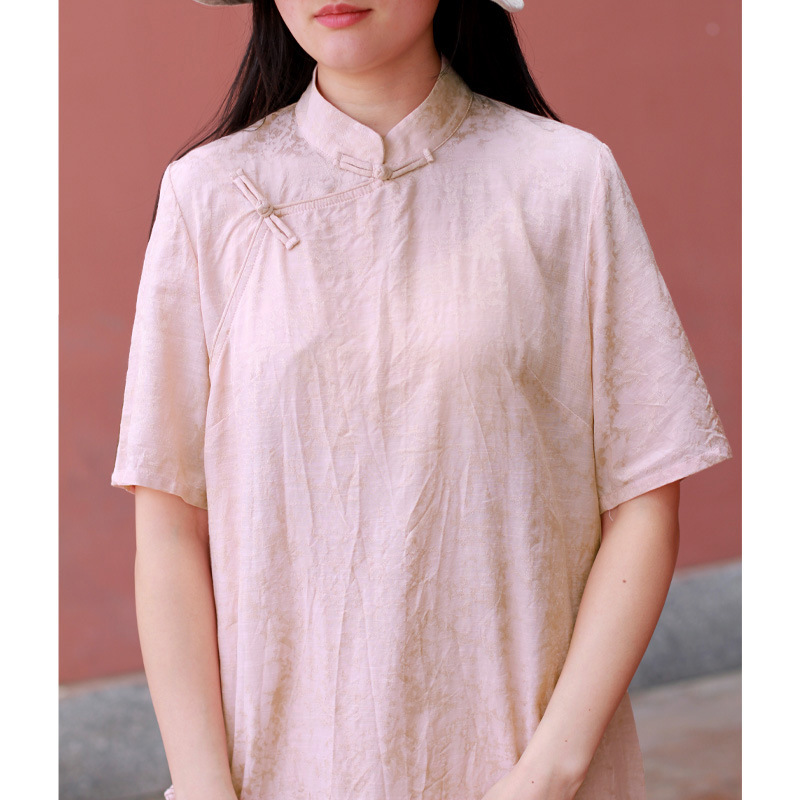 Gaun cheongsam longgar lengan pendek wanita, gaun cheongsam longgar kerah berdiri Tiongkok Jacquard kupu-kupu Rayon baru musim panas 22 2231