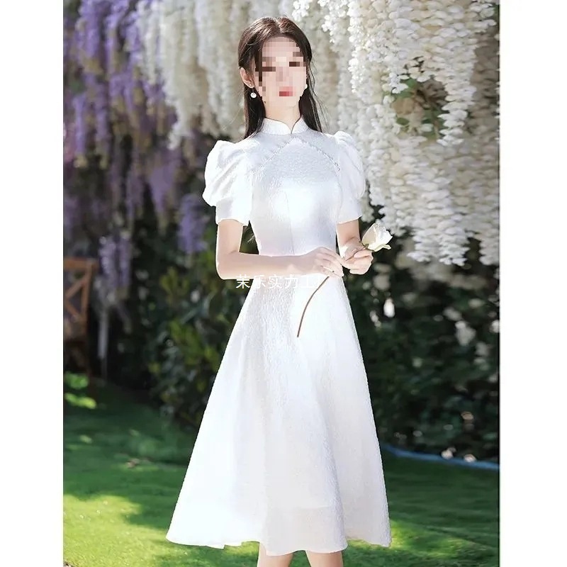 Gaun Cheongsam Gaya Prancis 9087 Gaun Kecil Model Baru 2025 Gaun Bisa Dipakai dengan Sertifikat Pertunangan