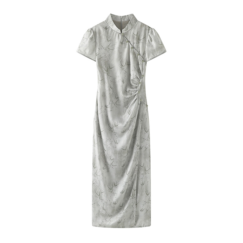Gaun cheongsam jacquard asetat satin untuk wanita, gaun lengan pendek gaya Tiongkok baru musim semi dan musim panas 2024 gaya nasional retro baru