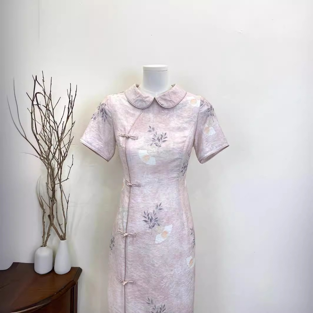 Gaun impian gaya Cina baru gaun cheongsam cetak ditingkatkan gaya nasional ringan setelan baju wanita musim panas merah muda biru aprikot