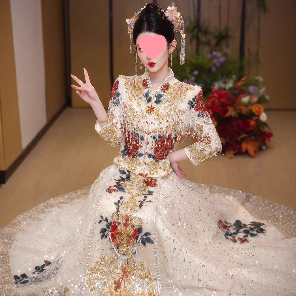 Pakaian Pertunjukan Warna Sampanye Pakaian Pernikahan Model Baru Mewah Kelas Atas 2025 Pakaian Pernikahan Model Baru Pakaian Pernikahan Gaya Tiongkok