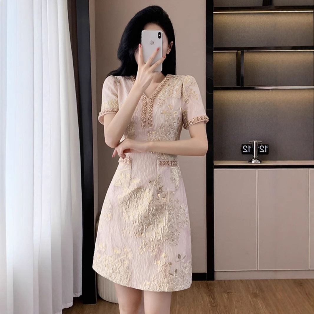 Qipao gaya Cina baru untuk ibu bertubuh mungil, gaun pesta pernikahan, model slim fit baru musim panas 2025, grosir pabrik 60671.