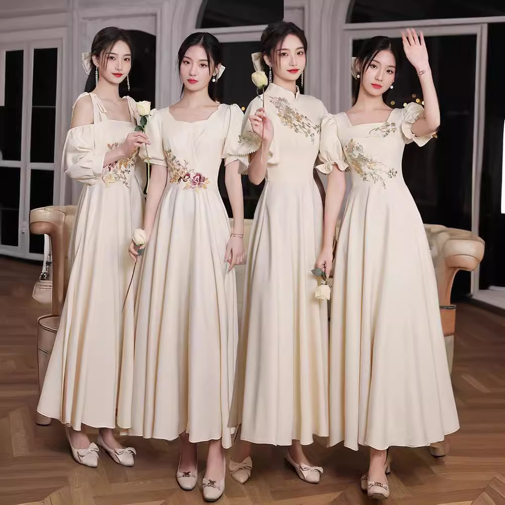 Pakaian Pengiring Pengantin Gaya Tiongkok Baru Dapat Dipakai Sehari-hari, Model Baru 2025 Gaun Kelompok Suster Niche Kecil Warna Sampanye Musim Semi dan Musim Panas