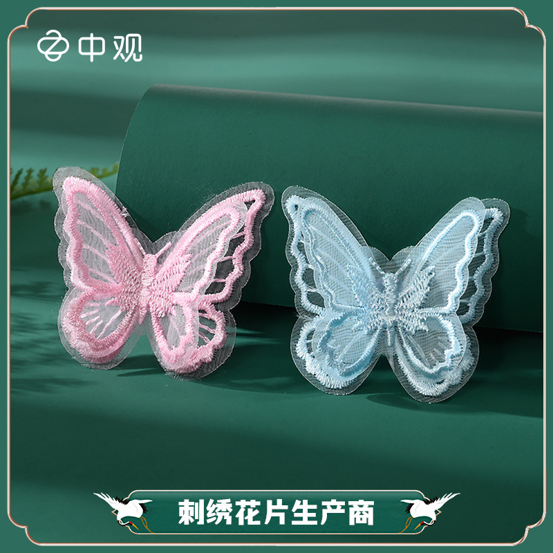Bordir Lapisan Ganda Renda Bunga Kupu-kupu Aksesori Hiasan Kepala Gaun Pengantin Hanfu DIY Aksesori Aksesori Buatan Tangan Stok Tersedia