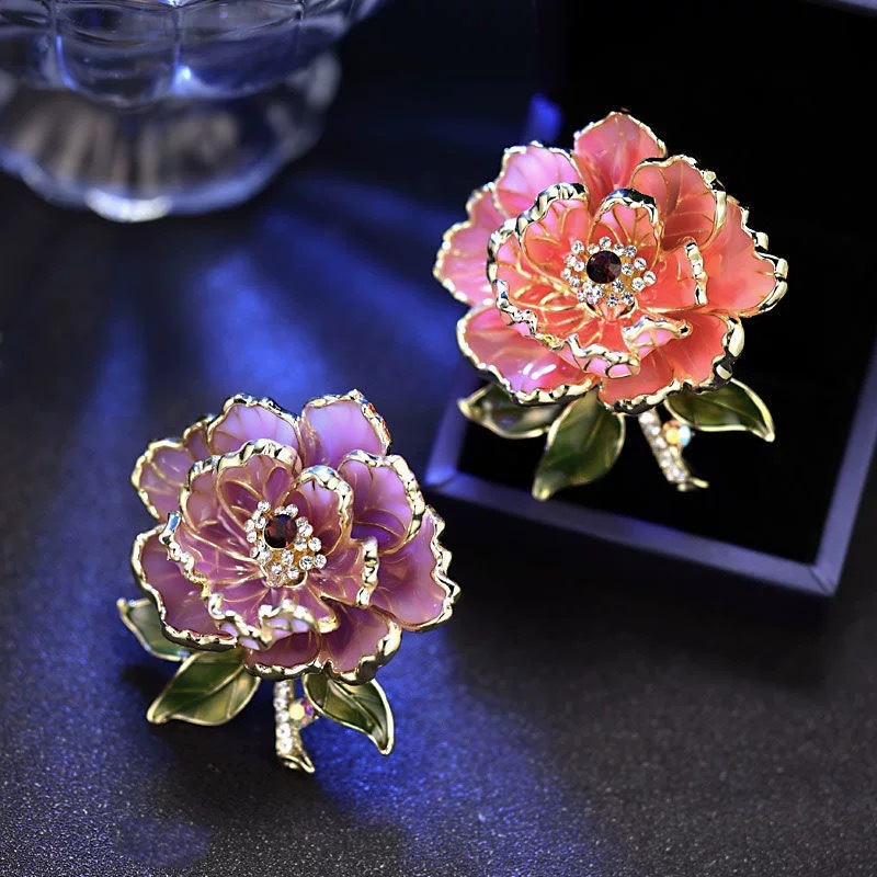 中国风珐琅牡丹花胸针女高级感古典胸花高档精致花朵别针旗袍配饰