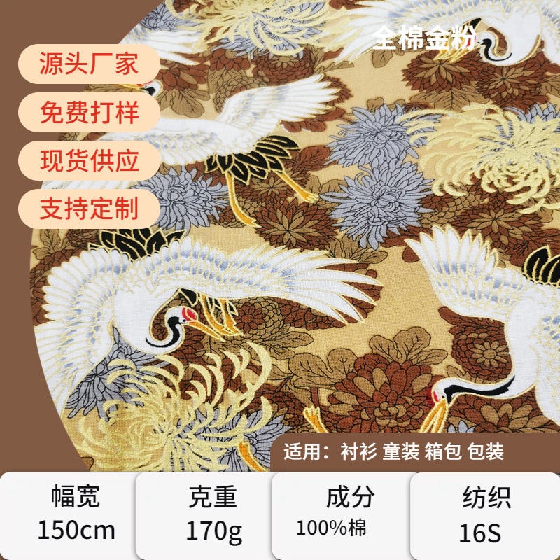 Kain cetak penyepuhan katun gaya kuno crane merah dimahkota crane penyepuhan gaun kain cheongsam grosir