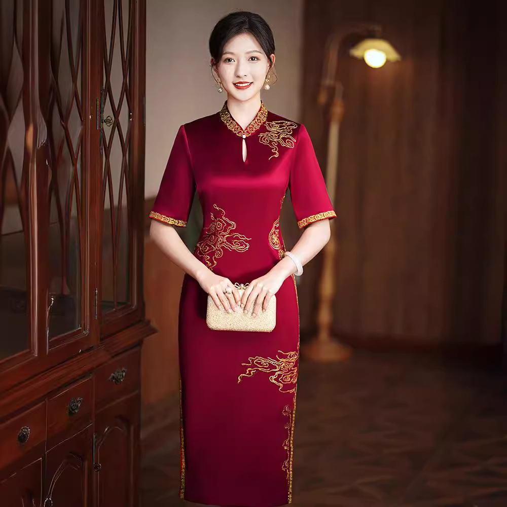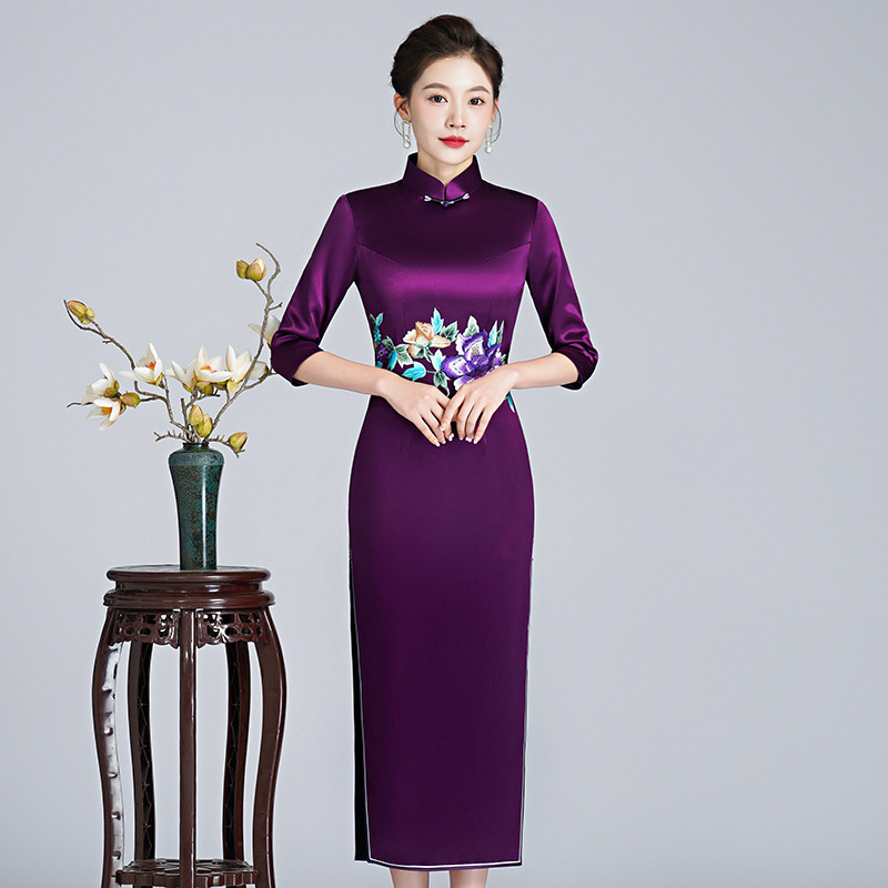 Pasokan langsung pabrik gaun ibu bordir pernikahan perjamuan pernikahan cheongsam Selamat ibu mertua upacara pernikahan ibu mertua gaun cheongsam musim semi dan musim panas